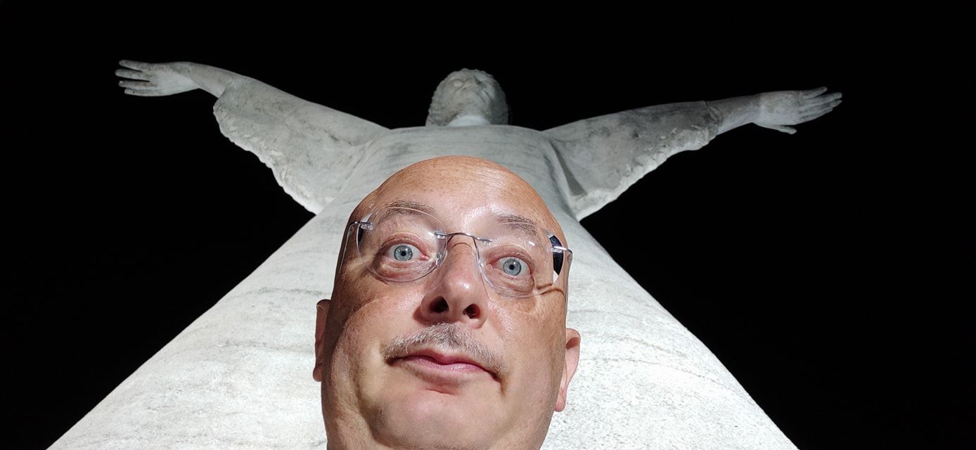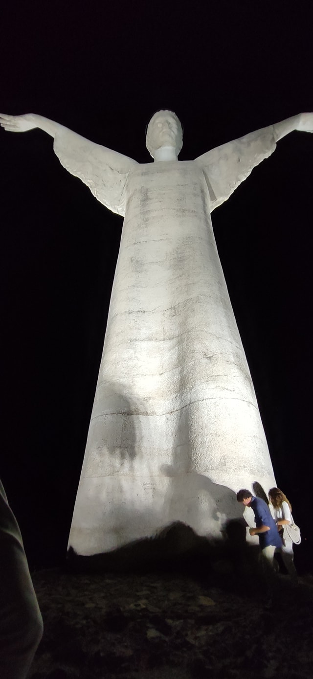 1) In realtà il Cristo Redentore sta accogliendo i fedeli che arrivano dalla comoda strada, con le braccia aperte