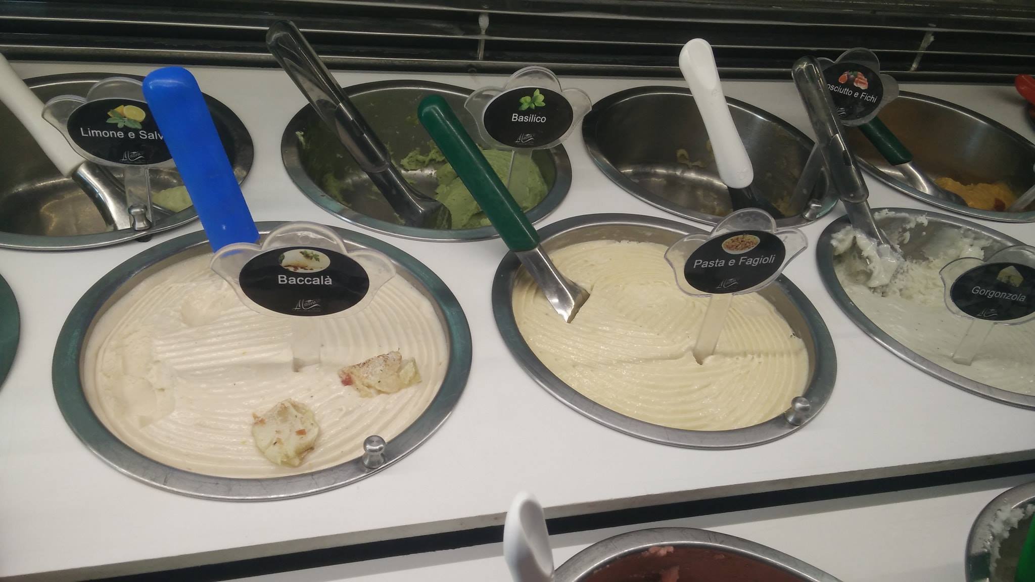 Gelato alla pasta e fagioli al Gorgonzola, Salmone, Cetriolo, Cipolla e tanti altri.