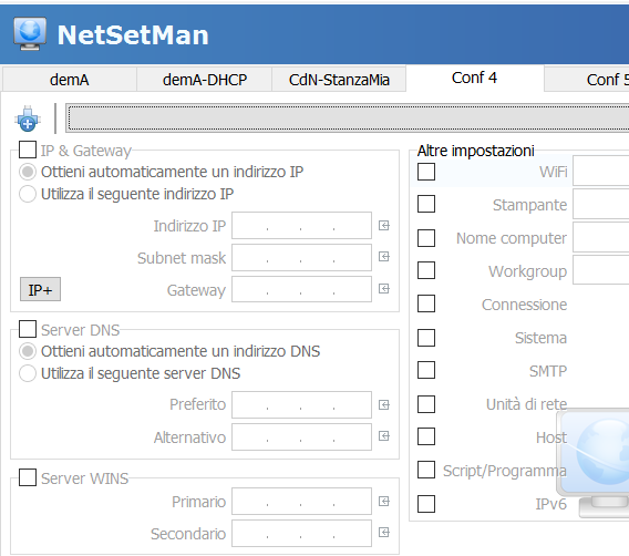 Nella quasi totalità dei casi è sufficiente la configurazione dei primi due parametri, ma NetSetMan fa molto di più, di seguito vi elenco le tantissime funzioni utilizzabili per ogni configurazione: