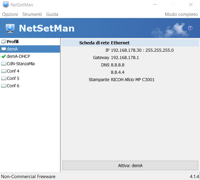 NetSetMan consente di preimpostare i parametri di rete per 6 differenti impostazioni nella versione free, mentre nella versione professionale non prevede limiti sul numero di configurazioni.