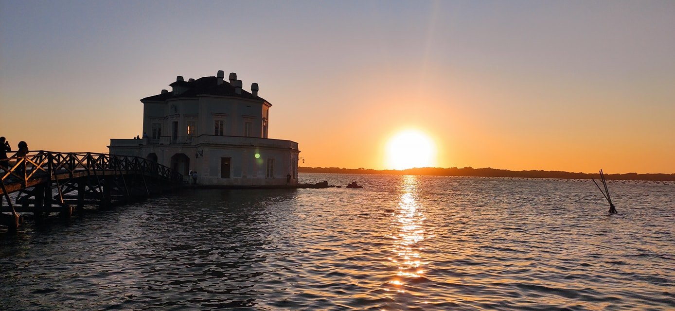Il tramonto dalla Casina Vanvitelliana sul lago Fusaro