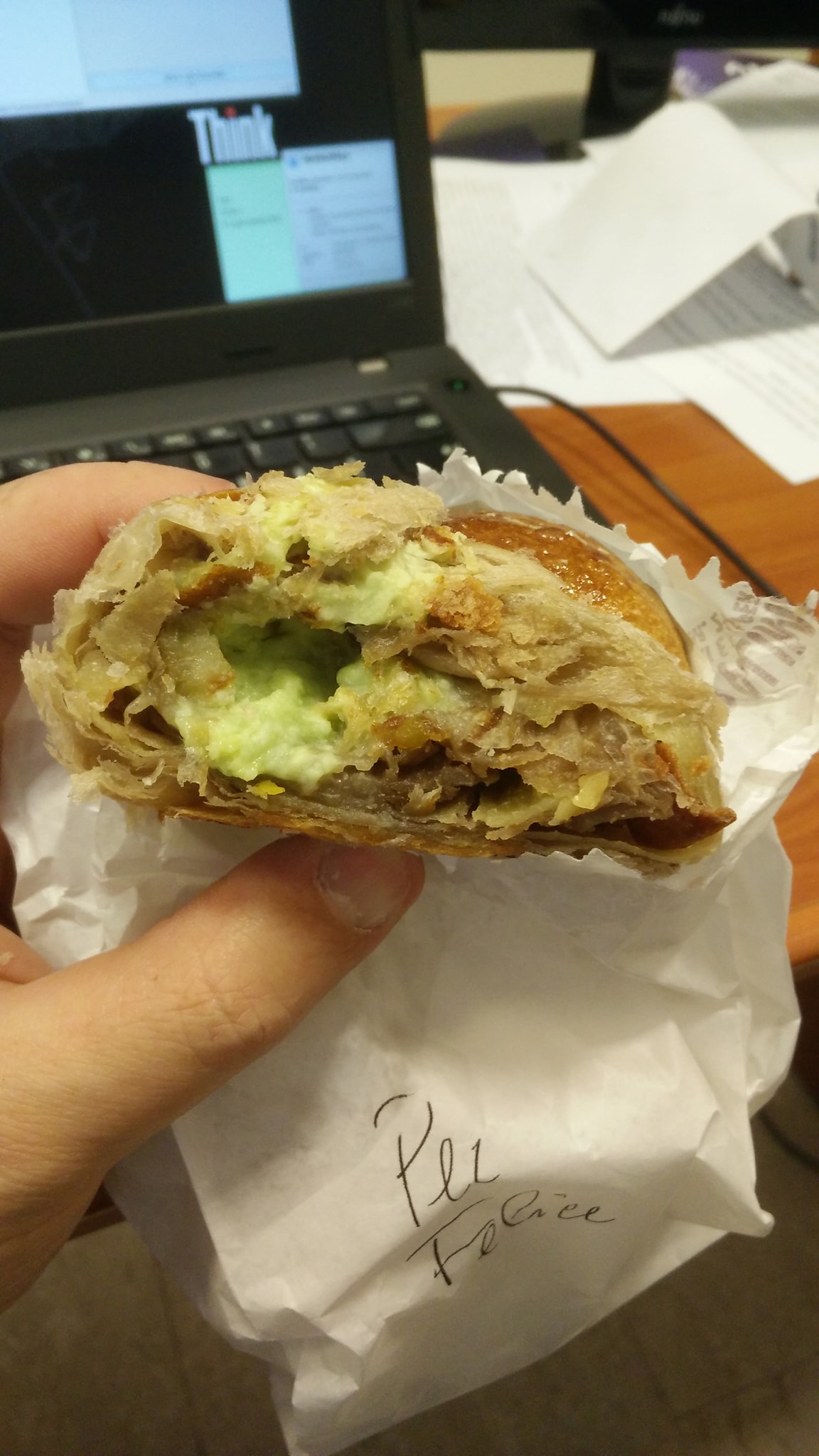 Oggi in ufficio un’anima pia, vedendomi affamato mi ha lasciato un buonissimo cornetto a pistacchio. Grazie a chi è autonoma e mi sostiene Flavia So