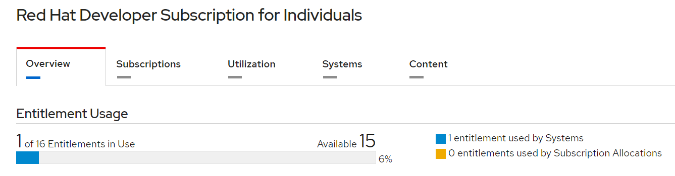 Passo 2: Una volta completata la registrazione la parte più interessante è “Subscriptions”. Se è la prima volta che vi registrate, questa sessione è vuota, non ci sono “contratti” acquistati. Red Hat, ha reso disponibile un particolare tipo di “sottoscrizione” gratuita per le sue soluzioni. E’ possibile utilizzare fino a 16 licenze gratuite, oltre le quali vanno acquistate. Sulla precisa terminologia su cosa voglia dire 16 “attivazioni” possibili, vi lascio al link ufficiale. Ad ogni modo è considerata una “attivazione”, una singola macchina virtuale che non abbia oltre le 16 CPU. Praticamente è possibile attivare fino a 16 macchine virtuali in modo gratuito.