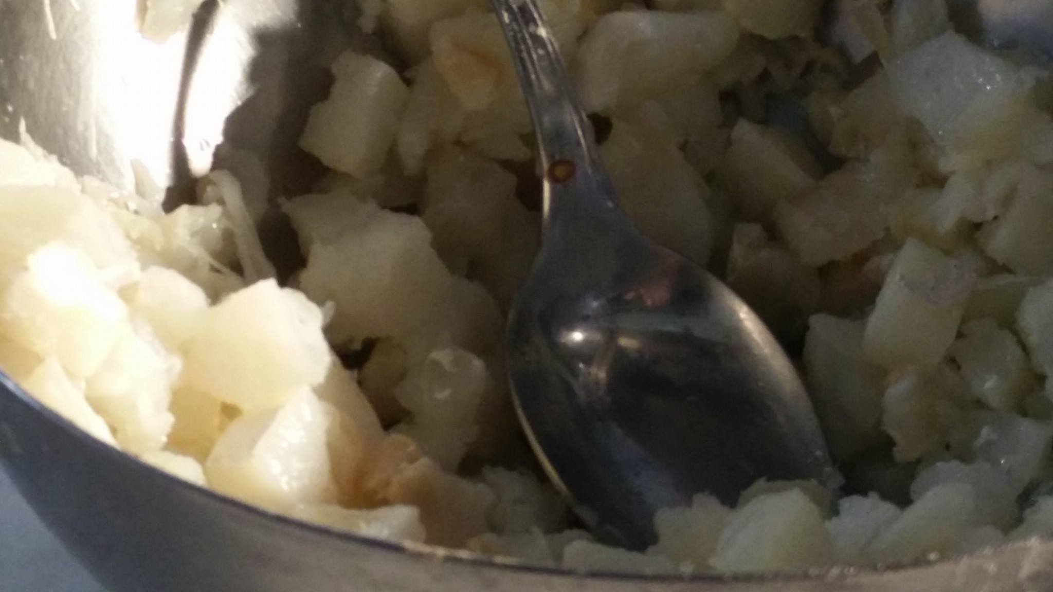 Per la precisione il battilocchio, versione più piccola della classica piazza fritta partenopea. Qui in versione baccalà, ulive nere e pomodori. Da provare a quella della Masardona (zona Loreto mare).