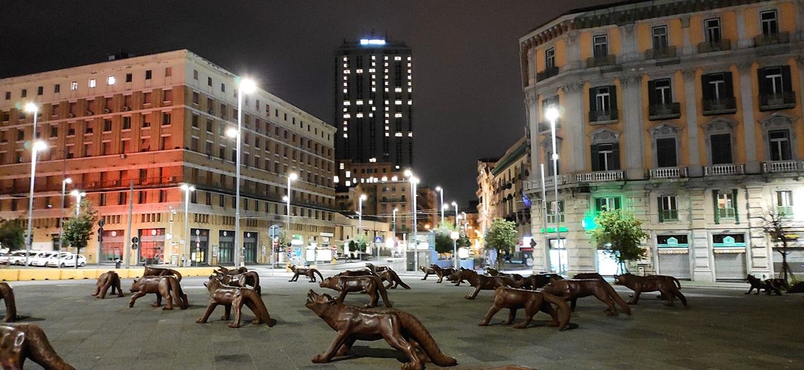 Piazza Municipio, Napoli. I lupi destinati a Firenze hanno scelto di restare qui a Napoli per trascorrere questo periodo di isolamento. In fondo non
