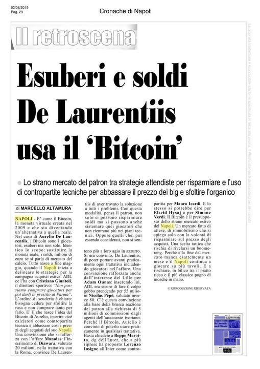 Sconto del progetto Napoli Blockchain per gli acquisti calcistici, ci sarebbe trasparenza e una parte del costo delle transazioni tra club andrebbe ai tifosi.